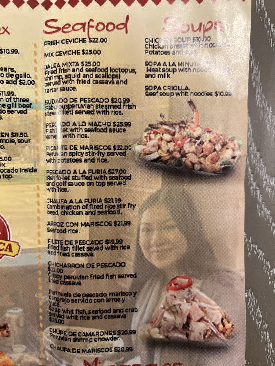 Overall, the menu at La Furia Chalaca is a celebration of bold and vibrant flavors, with a wide range of choices that cater to both meat and seafood lovers alike, all at reasonable prices. Whether you're a fan of hearty meals or light bites, you'll find something to enjoy in this Peruvian culinary paradise.